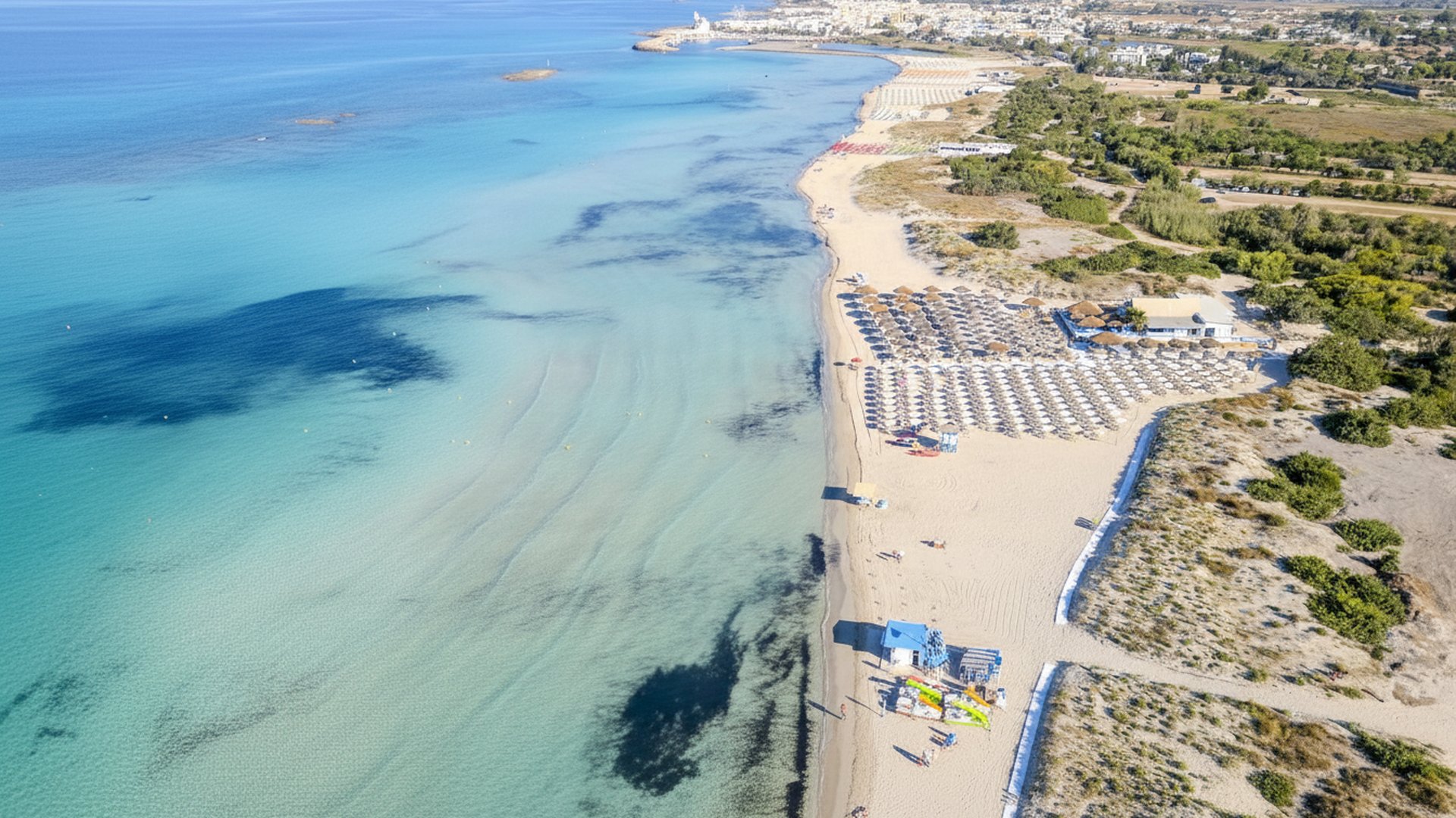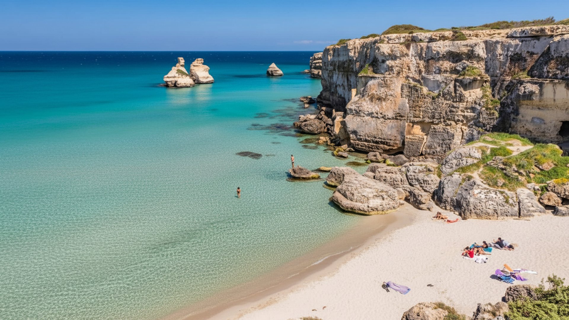 Tra le spiagge più famose del sud Italia, le Maldive del Salento colpiscono per la sabbia chiarissima e le acque turchesi che ricordano scenari tropicali. Ideali per chi ama il mare cristallino, offrono tratti liberi e stabilimenti attrezzati, perfetti per giornate di puro relax a contatto con la natura.